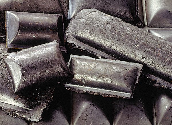 Heißes direkt reduziertes Eisen, sogenannter Eisenschwamm, wird mit Temperaturen von bis zu 750°C aufgegeben. Der Eisenschwamm enthält rund 85% metallisches Eisen. Dadurch ist das Material plastisch verformbar und kann zu Briketts verschmiedet werden.