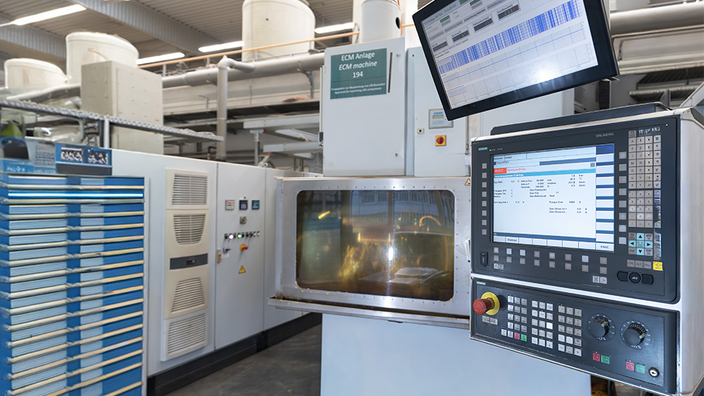 Der ECM-Prozess ermöglicht verkürzte Bearbeitungszeiten durch den Einsatz von Mehrfachwerkzeugen, die verschiedene Geometrien gleichzeitig erzeugen. Dadurch werden hohe Stückzahlen mit konstanter Wiederholgenauigkeit gefertigt.